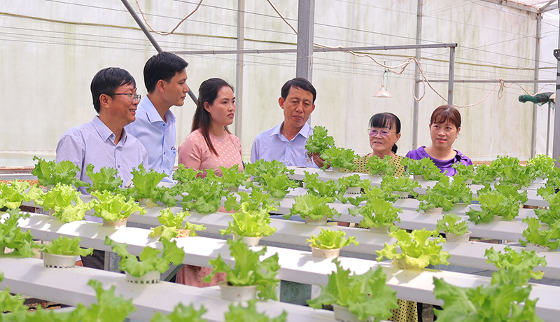Đại biểu tham quan Mô hình kinh tế tuần hoàn, trồng rau kết hợp nuôi cá của Công ty TNHH Nông sản Đồng Tháp Aqua (xã Bình Thạnh Trung, huyện Lấp Vò)