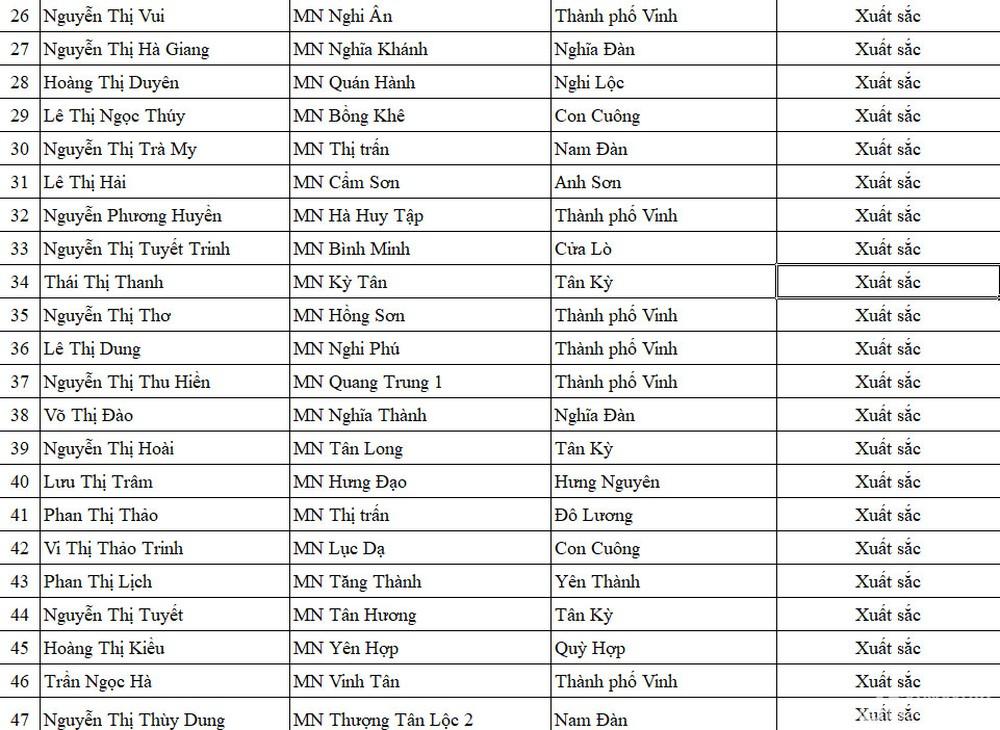 Danh sách 47 giáo viên được khen thưởng. Ảnh: MH