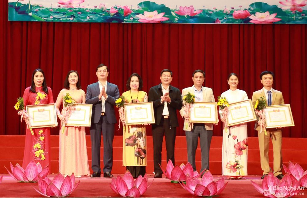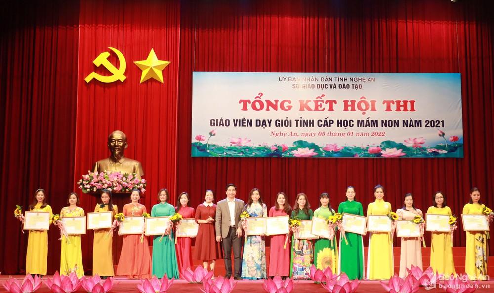 Sở Giáo dục và Đào tạo khen thưởng cho các giáo viên xuất sắc nhất hội thi. Ảnh: MHBên cạnh đó, khen thưởng cho 47 cá nhân có thành tích xuất sắc trong Hội thi. Dịp này, Liên đoàn Lao động tỉnh khen thưởng cho 15 giáo viên có kết quả cao nhất trong Hội thi.