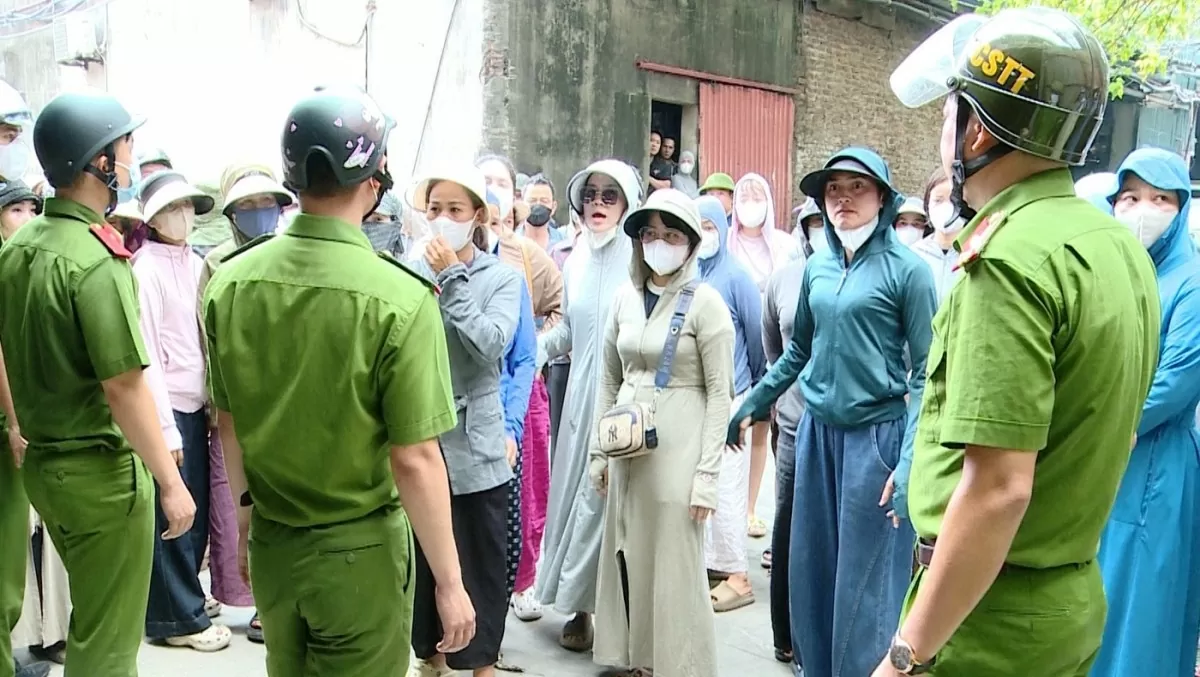 Một số người dân tụ tập, gây rối trong quá trình lực lượng chức năng kiểm tra. Ảnh: BĐ |