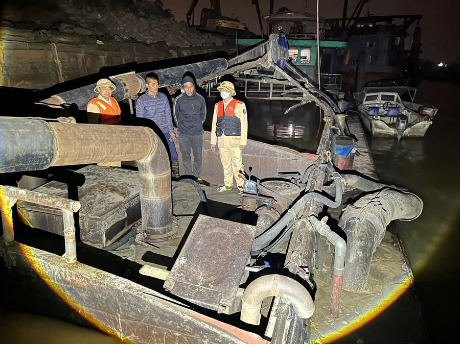 Rạng sáng 24/12, Cảnh sát phát hiện, bắt giữ một phương tiện thủy không có số đăng ký, đăng kiểm, đang hút cát trái phép trên sông Hồng (Hà Nội).