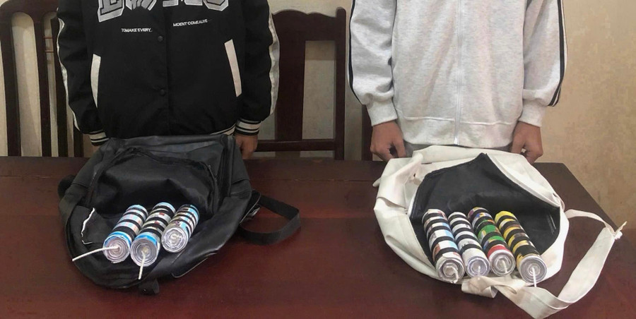 Tiến hành kiểm tra, lực lượng Công an phát hiện trong ba lô các em mang theo có 7 vật thể hình trụ tròn, mỗi vật thể dài khoảng 17cm, đường kính khoảng 4cm, một đầu gắn dây dẫn màu trắng.