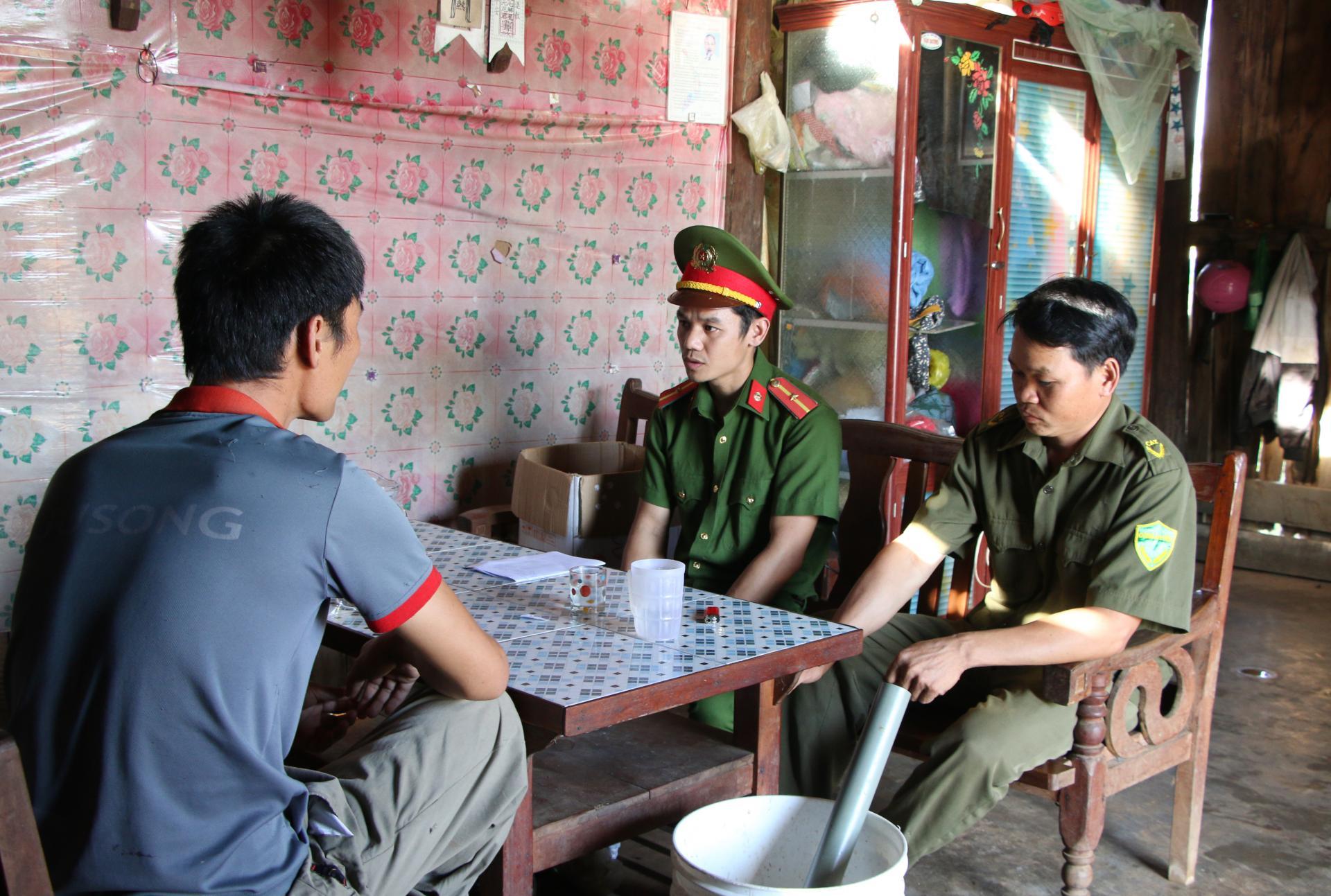 Công an xã Ea Wy đến thăm hỏi, động viên người cai nghiện thành công ở thôn 5A. |