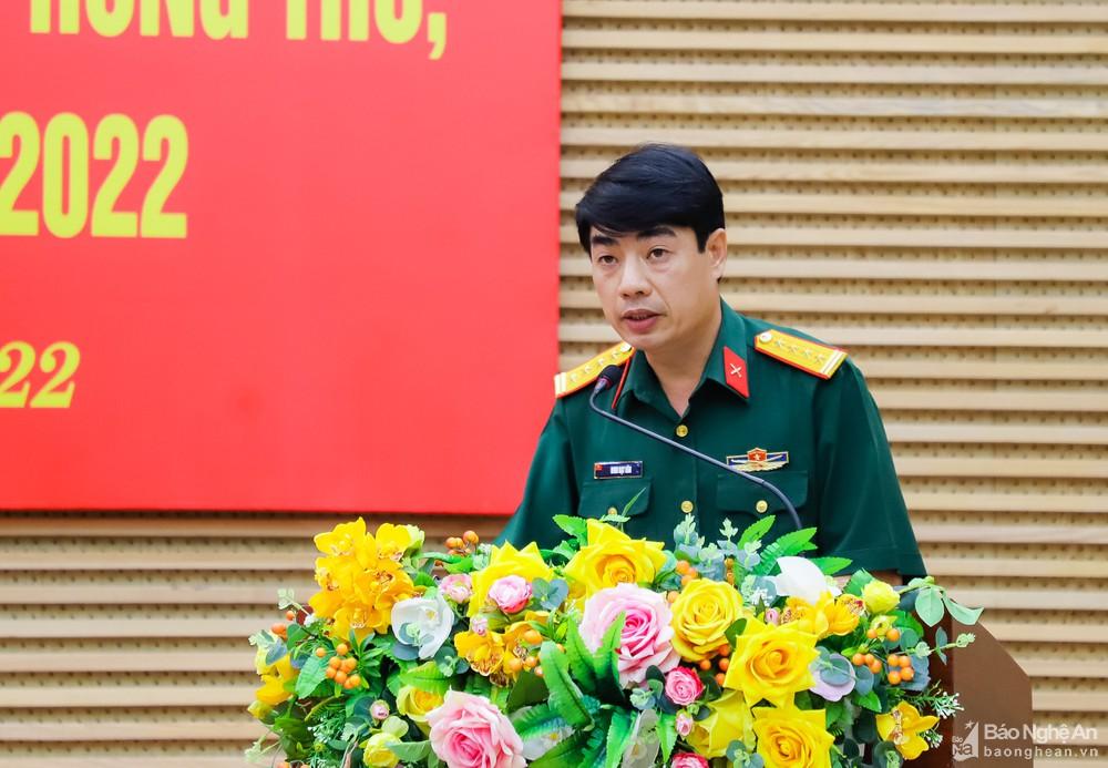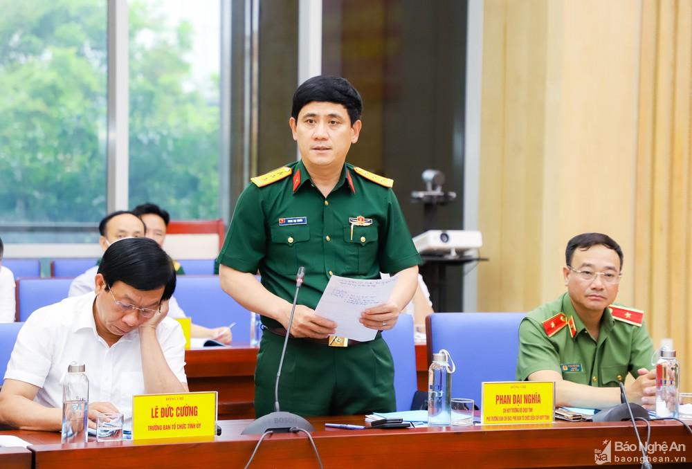 Thượng tá Phan Đại Nghĩa - Chỉ huy trưởng, Bộ Chỉ huy Quân sự tỉnh phát biểu tại hội nghị. Ảnh: Phạm Bằng
