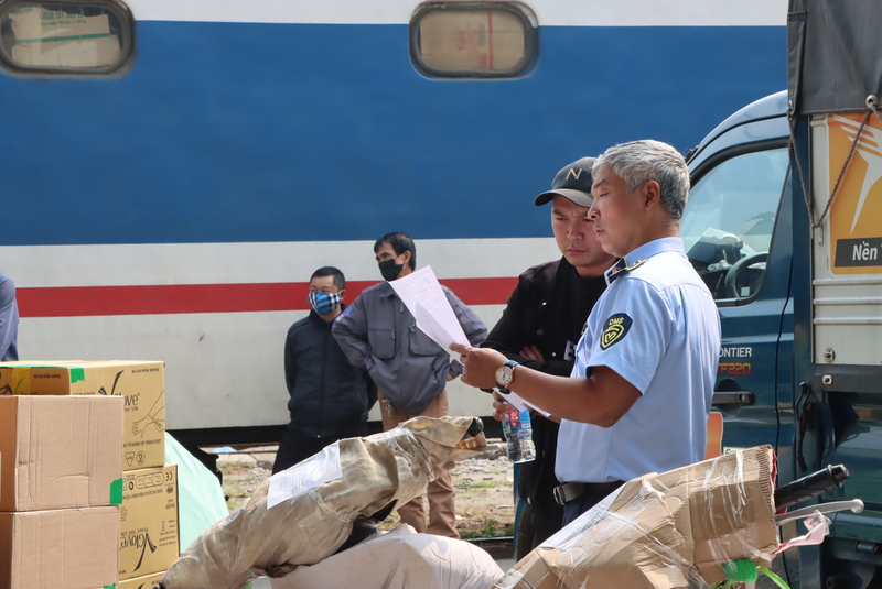 Theo thông tin từ cơ quan chức năng, ngày 14/1/2026, tại điểm tập kết hàng hóa (sân cửa ra ga số 8 - Ga Hà Nội, trước Phòng Giao dịch vận chuyển hàng hóa, cạnh đường ray số 11), Phòng Nghiệp vụ Quản lý thị trường đã phối hợp khám nơi cất giấu tang vật, phương tiện vi phạm hành chính theo Quyết định số 000010001/QĐ-KNCG.